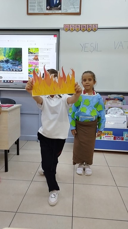 Sınıflarımızda "orman yangınları’"ve "doğa sevgisi" konularında drama çalışmaları gerçekleştirilmiştir. Öğrenciler, drama yöntemiyle hem doğayı korumanın önemini pekiştirmiş hem de orman yangınlarının doğaya ve canlılara verdiği zararları empati yoluyla deneyimlemişlerdir.